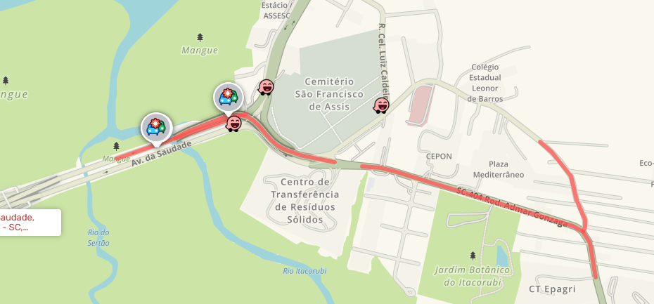 No aplicativo de locomoção Waze, a fila tinha início no Jardim Botânico do Itacorubi no momento do acidente. Por volta das 8h25, a via já estava liberada para o trânsito de veículos, mas ainda com lentidão na SC-401 até a área de Cacupé.