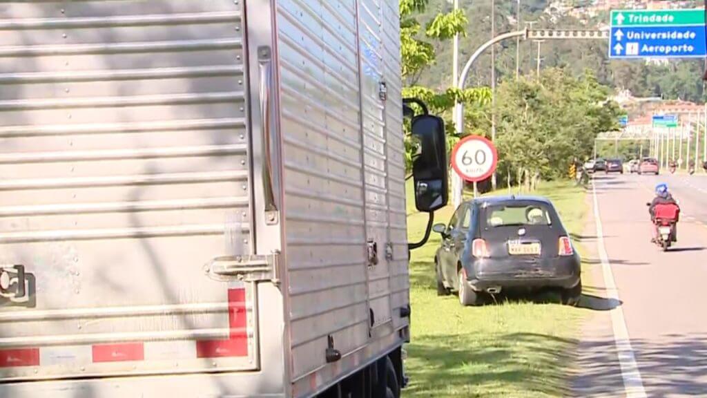 Segundo o relato do motorista do caminhão ao Bom Dia SC, o veículo pesado bateu na traseira do carro onde estava o motorista ferido.