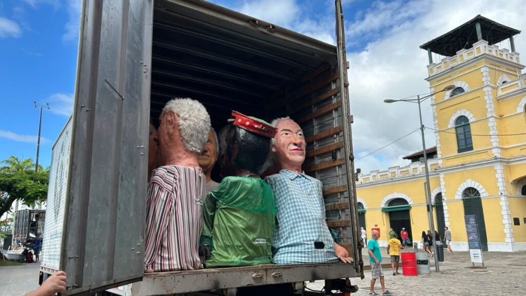 Já os 42 bonecos que não foram atingidos pelo incêndio seguem para o subsolo do Clube 12 de Agosto, onde ficam armazenados até o próximo carnaval.