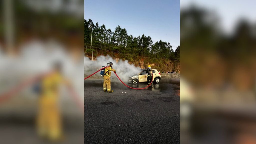 Carro pega fogo em rodovia movimentada de Florianópolis; FOTOS