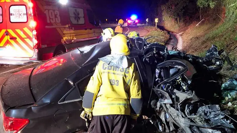 Um grave acidente de trânsito resultou na morte de um homem e deixou outro ferido na rodovia BR-280, no município de São Bento do Sul, no Norte catarinense. A colisão frontal ocorreu na noite desta quinta-feira (16), pouco depois das 20h, na localidade conhecida como Rio do Mandioca.