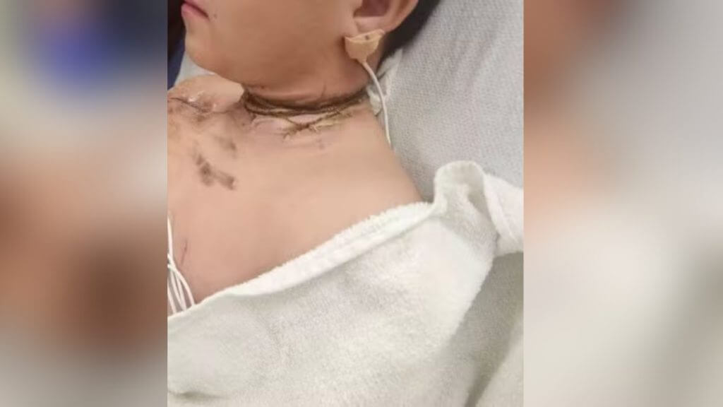 O menino sentiu a descarga elétrica e um calor intenso, já que a camisa estava em chamas. Ele removeu rapidamente o colar e foi levado às pressas ao hospital pela mãe.