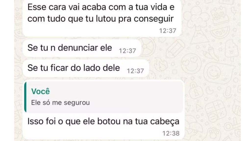 “Me calei por medo de não acreditarem em mim, por medo de tudo que poderia vir depois. E, ironicamente, agora quem está sendo julgada sou eu: a vítima. A mulher que acreditou que conseguiria sair de tudo isso sem ter seu nome vinculado a algo tão grave, ou que não passaria apenas de palavras que me machucava, mas se tornou outro modo de me machucar”, disse a Miss no texto.