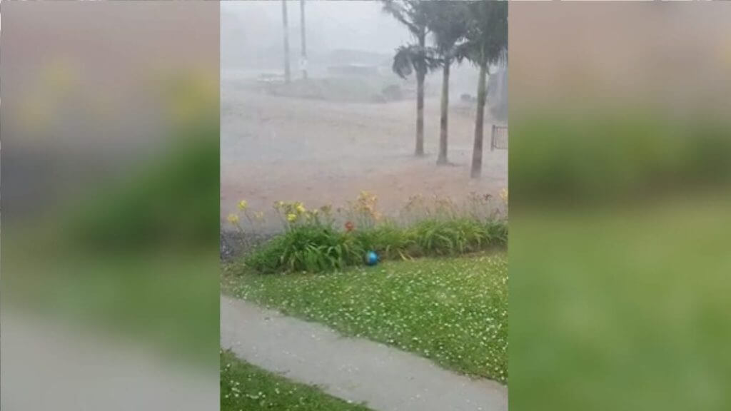 Foram registrados alagamentos em ruas, três quedas de árvores, 28 residências destelhadas, uma escola danificada e três vias obstruídas por árvores.