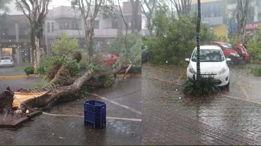 Destelhamentos, queda de árvores e interrupção de vias. Seis postes caíram, 6 residências foram afetadas e 5 vias interditadas.