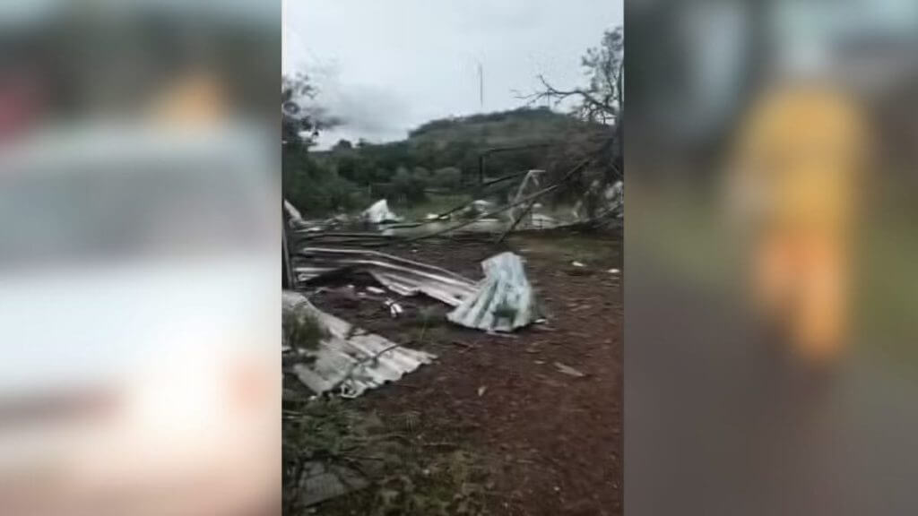Chuva intensa afetou 1 residência. Horas depois um vendaval do tipo redemoinho destelhou uma leitaria e uma casa.
