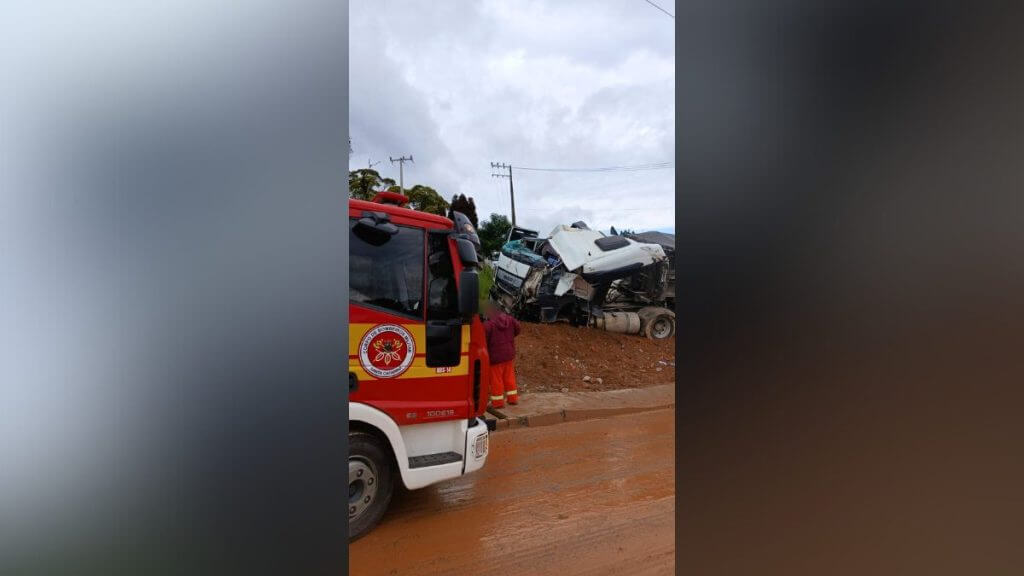 Um grave acidente entre dois caminhões paralisou o quilômetro 58 da BR- 282 em Águas Mornas, na Grande Florianópolis na manhã desta terça-feira (9). A colisão é o segundo caso em menos de 24h na região. No primeiro, duas pessoas vieram a óbito no local, agora, duas vítimas foram registradas com lesões graves.