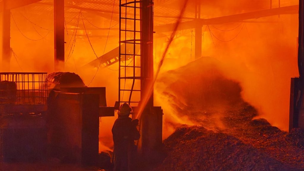Incêndio de grandes proporções destrói fábrica de papel em pequena cidade de SC; FOTOS