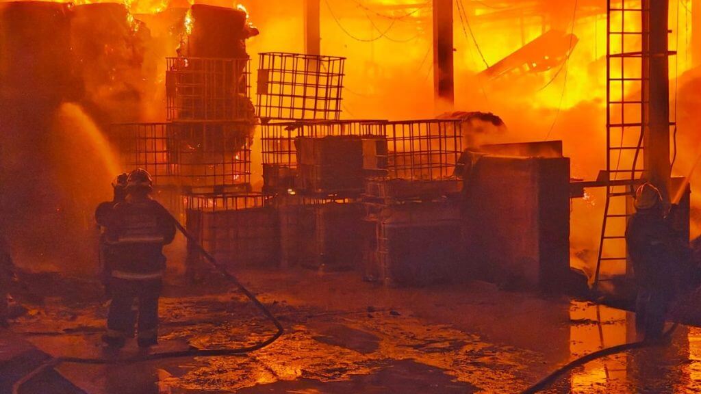 Chamas gigantescas tomaram conta de uma fábrica de papelão em Jaraguá do Sul, no Norte catarinense, durante a noite de quinta-feira (11) e parte da manhã de sexta-feira (12). De acordo com os bombeiros voluntários da cidade, o fogo tomou conta de metade da empresa. Ninguém ficou ferido.