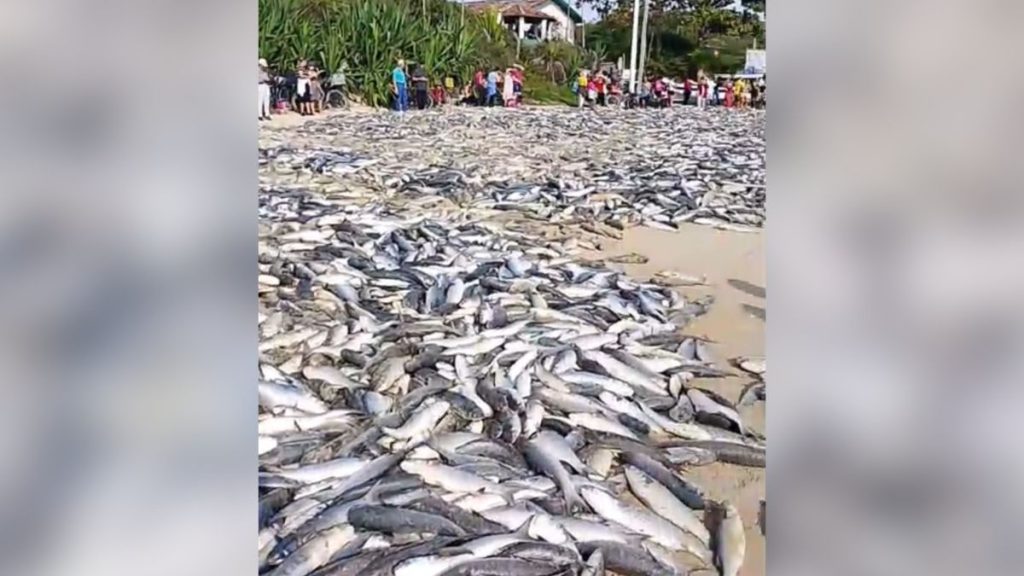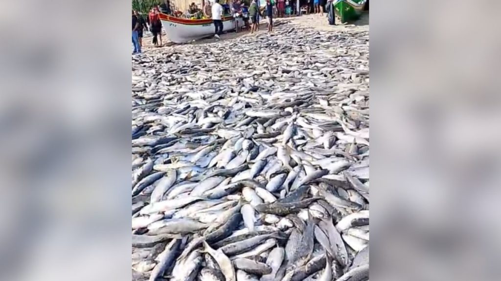 O arremate foi registrado na Praia de Cima, em Palhoça. Imagens divulgadas por moradores mostram redes repletas de peixes, com tainhas ainda pulando para fora d’água.