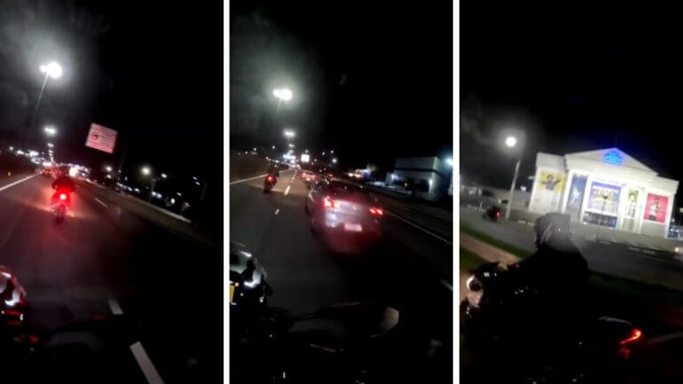 Durante a madrugada desta sexta, agentes do Grupo de Motociclismo Policial da PRF avistaram um motociclista em altíssima velocidade pilotando pelo corredor entre os automóveis na BR-101.
