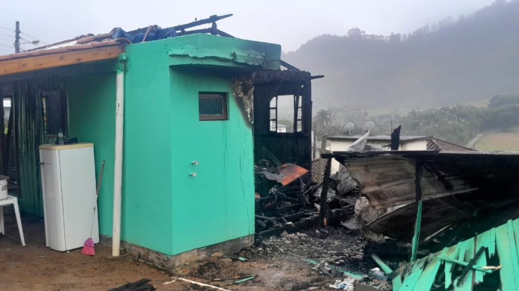 Um incêndio destruiu totalmente uma casa em Governador Celso Ramos, na Grande Florianópolis, durante a madrugada desta sexta-feira (25). Moravam na residência um casal e a filha de quatro anos.