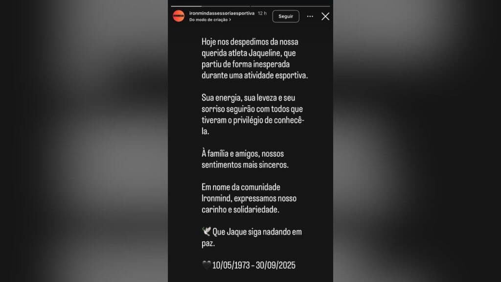 A notícia comoveu amigos, atletas e empresários que conviviam com Jacqueline. A assessoria esportiva da qual fazia parte publicou uma homenagem: “Sua energia, leveza e sorriso seguirão com todos que tiveram o privilégio de conhecê-la. Que Jacqueline siga nadando em paz.”