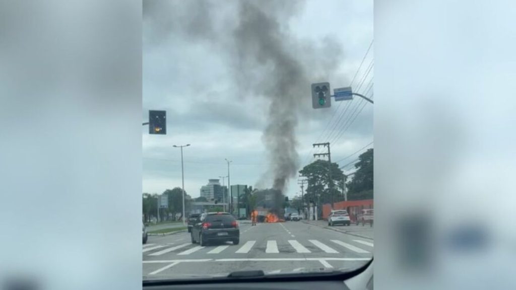 Motorista perde controle e ônibus se choca contra poste em Florianópolis; veja vídeo