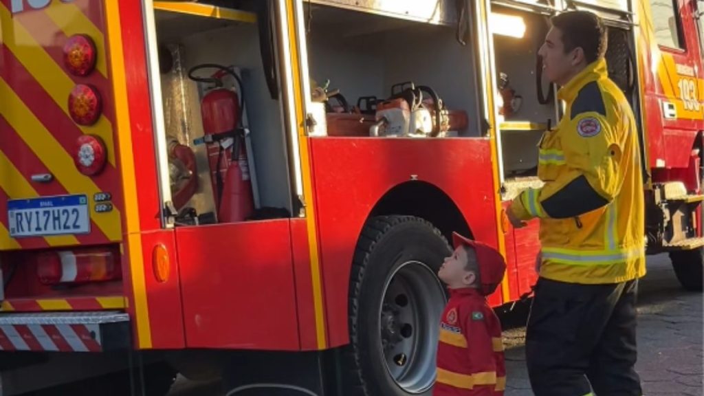 — Quando ele viu o caminhão dos bombeiros chegando, ele não acreditou. Não conseguia se aguentar, pulava de alegria — contou emocionado o pai, Deni Gomes Chaves e a mãe, Alice.
