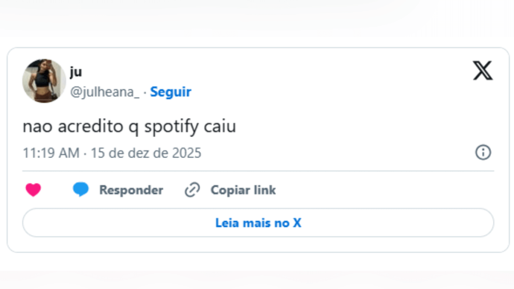 No Google Trends, site que registra as principais buscas na internet, pesquisas como “Spotify fora do ar” e “spotify caiu” aumentaram repentinamente na última hora. A seguir, confira mais detalhes sobre a falha e veja os principais relatos nas redes sociais.