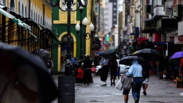 O domingo (23) será mais fechado e chuvoso. As máximas devem ficar perto dos 18ºC, com sensação de tempo mais frio ao longo do dia.